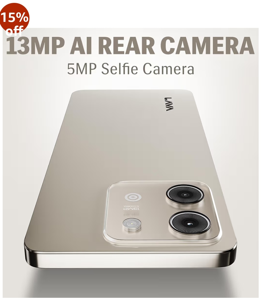 Lava Bold N1 Lite (Crystal Gold, 3 GB RAM, 64 GB Storage) | 6.75″ HD+ Display | 13MP AI Dual Rear Camera | 5000 mAh Battery | Secure Face Unlock | Fingerprint Reader | Charger & Phone-Cover in Box